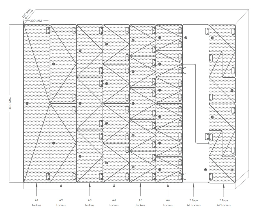 | A1 | Single door locker unit. Conventional style with hat and hanging space. Any application. | 1400 | 1830 |